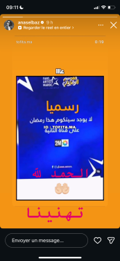 وشارك أنس الباز متابعيه عبر خاصية “الستوري” على حسابه الرسمي بموقع التواصل الاجتماعي “إنستغرام” منشورا يشير إلى عدم وجود سيتكومات في موسم رمضان المقبل على القناة الثانية، مرفقا ذلك بعبارة “تهنينا”.