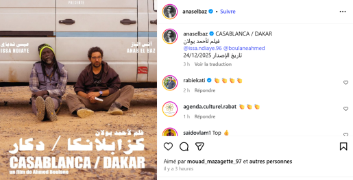 كشف الفنان المغربي، أنس الباز لمتابعيه على منصة “إنستغرام” عن موعد عرض فيلمه السينمائي الجديد “كازابلانكا / دكار”، الذي يجسد فيه دور البطولة.