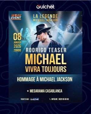 تستعد مدينة الدار البيضاء لاحتضان عرض فني عالمي مميز يكرم أسطورة البوب الراحل، مايكل جاكسون، يقدمه الفنان البرازيلي، رودريغو تيزر، أحد أبرز فناني الـ “Tribute” في العالم الذين اشتهروا بتجسيد أسلوب وأداء جاكسون على المسرح.