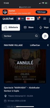 وحسب الملصقات الرسمية المتداولة عبر منصة “Guichet.com”، فقد شمل الإلغاء العروض المقررة في كبرى المدن المغربية، إذ تم إلغاء عرض الدار البيضاء بمركب “ميغاراما” يوم الجمعة 6 فبراير، تلاه عرض الرباط بمسرح محمد الخامس يوم الأحد 8 فبراير.