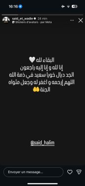 وجاء في تدوينة نشرت عبر الحساب الرسمي للثنائي: “البقاء لله، إنا لله وإنا إليه راجعون، الجد ديال خونا سعيد في ذمة الله، اللهم ارحمه واغفر له واجعل مثواه الجنة”.