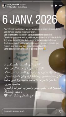 وشددت على أنه لا يوجد ما هو مخفي أو يدعو للريبة، مؤكدة أن ما يتم تداوله من تأويلات لا أساس له من الصحة، وأضافت أنها اختارت تقديم هذا التوضيح بهدوء واحترام، ليس بدافع التبرير، وإنما احتراما لنفسها، وحرصا على مصلحة طفلها، والتزاما بالحقيقة.