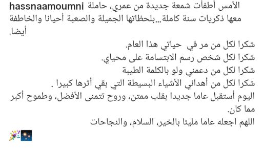 وفي ختام رسالتها، رحبت حسناء مومني بعامها الجديد بقلب ممتن وروح تتطلع للأفضل.