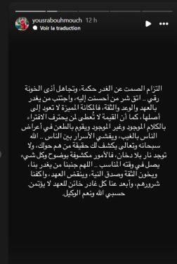 رسالة غامضة من يسرى بوحموش تثير التساؤلات: “اتقِ شر من أحسنت إليه” -صورة