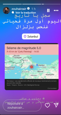 وأكد زائر في تدوينة على حسابه الشخصي بـ”الإنستغرام” أنها المرة الأولى في حياته التي يشعر فيها بهزة أرضية.