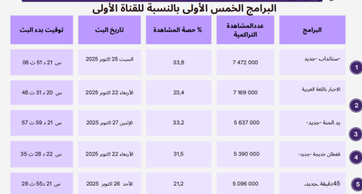 “ستانداب” يتصدر نسب المشاهدة على القناة الأولى