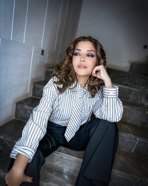 ونشرت “الديفا” مجموعة من الصور الجديدة، ظهرت فيها ببنطلون أسود أنيق وقميص مخطط مزين بربطة عنق، في لوك جمع بين الكلاسيكية والعصرية، منحها مظهرا مفعما بالحيوية والتجدد.