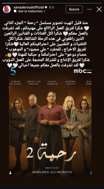 أعلنت الممثلة المغربية، سناء عكرود، مساء أمس السبت، عن انتهاء تصوير الجزء الثاني من مسلسل “رحمة”، الذي يعرض حاليا ضمن الأعمال الدرامية الخاصة بشهر رمضان.