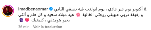 عماد بنعمر يعايد زوجته برسالة رومانسية في عيد ميلادها