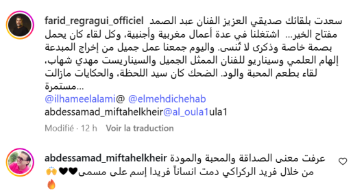 ومن جانبه، عبر عبد الصمد مفتاح الخير عن تقديره الكبير لصديقه فريد الركراكي، واعتبره مثالا في الصداقة والإنسانية، مؤكدا أن العمل معه دائما يحمل طابعا خاصا من الود والانسجام.