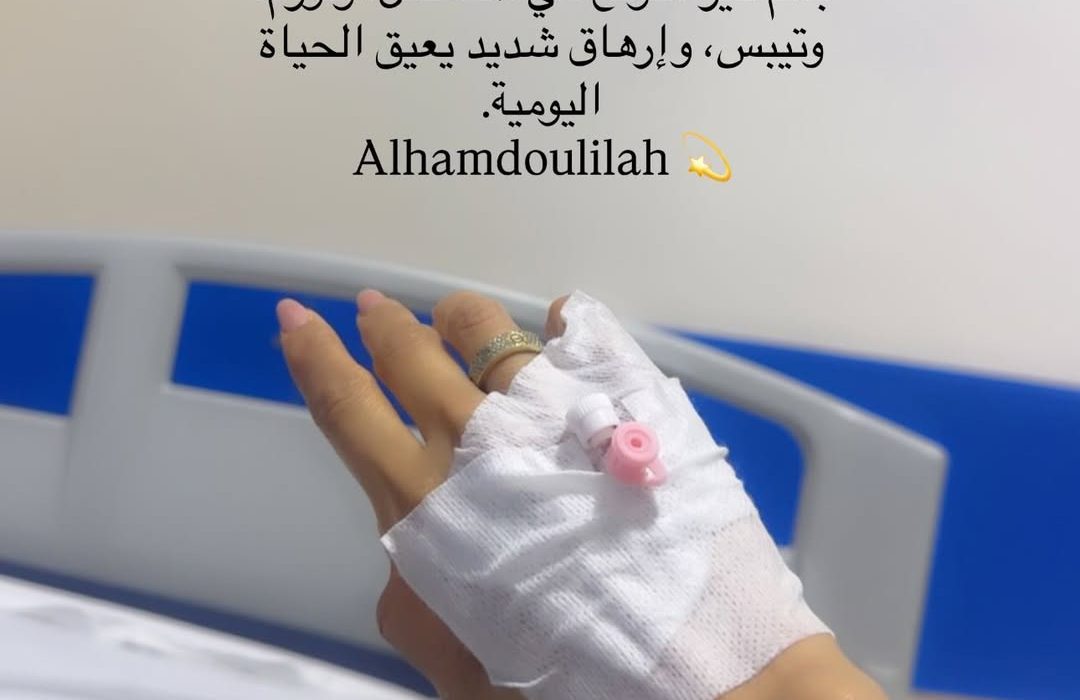ونشرت غيث صورة لها من المستشفى، ظهرت فيها يدها موصولة بـ”السيروم”، وأكدت أنها تعاني من مع التهاب المفاصل الروماتويدي.
