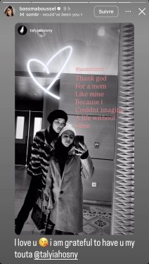 ونشرت نجلة بوسيل صورة جمعتها بوالدتها عبر خاصية “الستوري” بحسابها الرسمي “إنستغرام”، وأرفقتها برسالة مؤثرة كتبت فيها: “الحمد لله على أم مثلك، لا أستطيع تخيل حياتي بدونك”.