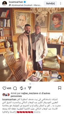 وحرص عصام سرحان على توثيق هذه اللحظات الخاصة، إذ قام بنشر صور تجمعه بعبد الوهاب الدكالي، تبرز الاحترام المتبادل بين جيلين مختلفين.