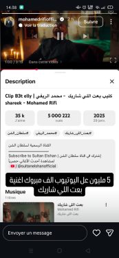 يشار إلى أن الفنان المغربي، محمد الريفي أصبح خلال الفترة الأخيرة أكثر نشاطا من حيث الإصدارات الفنية، وهو الأمر الذي مكنه من تحقيق نسب مشاهدة عالية عبر “يوتوب”.