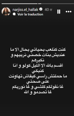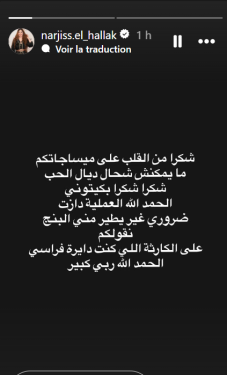 وفي السياق ذاته، أكدت نرجس الحلاق أن تجربتها الصحية كانت صعبة وغير متوقعة، واعدة جمهورها بمشاركة كل التفاصيل قريبا.