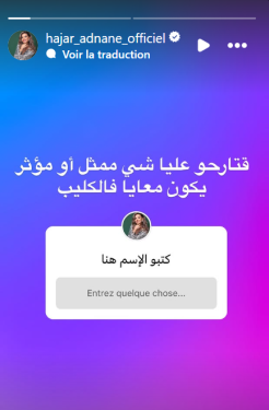 استشارت الفنانة المغربية، هاجر عدنان جمهورها بشأن اختيار بطل فيديو كليبها المقبل، في خطوة تفاعلية معهم.