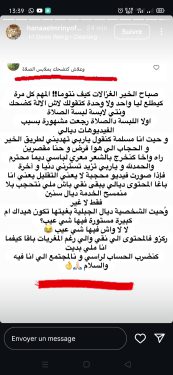 وختمت رسالتها بـ: “ركزو في المحتوى اللي نقي واللي رغم المغريات باقا كيفما أنا ملي بديت، كنضرب الحساب لراسي ونالجمتمع اللي أنا فيه والسلام”.