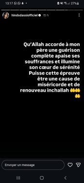 شاركت الفنانة المغربية، هند السداسي متابعيها، عبر حسابها الشخصي على “الإنستغرام”، تدوينة عبرت من خلالها عن قلقها على الحالة الصحية لوالدها، داعية له بالشفاء العاجل.