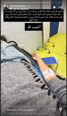 ونشر زين الدين صورة له من داخل المستشفى، ظهر فيها وهو على السرير الطبي يتلقى العلاج، مرفقة بتدوينة مؤثرة قال فيها: “الحمد لله، عشت ساعات من الرعب الحقيقي”.