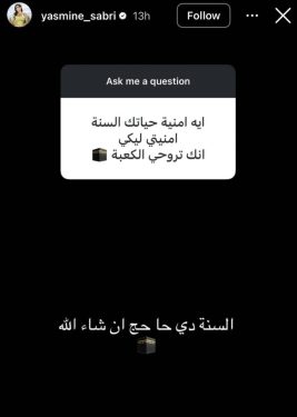 وجاء إعلان صبري خلال تفاعلها مع جمهورها عبر خاصية “سؤال وجواب” على حسابها الرسمي “إنستغرام”، حيث كشفت عن رغبتها في زيارة بيت الله الحرام وتأدية هذه الفريضة العظيمة هذه السنة، مدونة: “السنة دي حا حج إن شاء الله”.