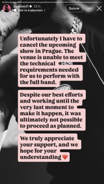 وكتب صاحب أغنية “يما” في تدوينته: “لسوء الحظ، يجب أن ألغي العرض القادم في براغ، المكان غير قادر على تلبية المتطلبات التقنية اللازمة لتمكيننا من الأداء مع الفرقة الكاملة، وعلى الرغم من كل جهودنا ومحاولاتنا حتى اللحظة الأخيرة لجعل الأمر ممكنا، إلا أنه في النهاية لم يكن من الممكن المضي قدما كما هو مخطط له، نحن نقدر دعمكم حق التقدير، ونأمل أن تتفهموا هذا القرار”.